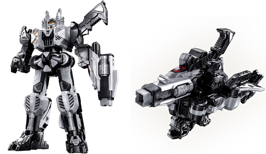 また、「DXギャバリオントリガー」はギャバン達が搭乗するスペースシップ「コスモギャバリオン」に変形可能。スペースシップ状態でエモルギア(ジマンゲーダー GC-R)とドッキング、変形させるとロボ状態である「コスモギャバリオン GC-R」が完成。音と光で臨場感あるロボ遊びが楽しめます。