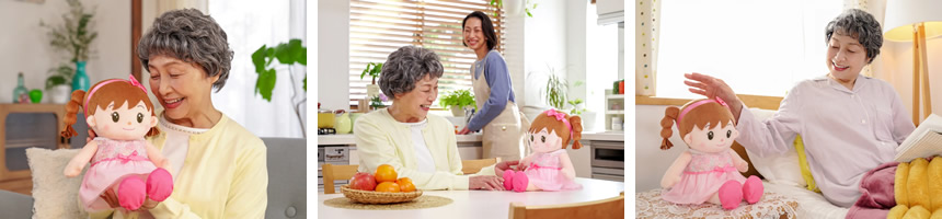 ちーちゃんの声には 実在する3歳女の子の声を採用。ちーちゃんの方からやさしく話しかけてくれるため、まるで本物の孫と過ごしているような温かい気持ちになれます。