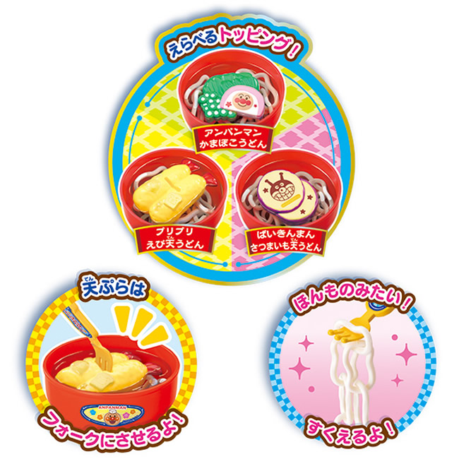 コンロのスイッチを押すとピカピカ光って「ドレミファアンパンマン」が流れ、お料理遊びを盛り上げます。